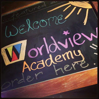 A sign at the coffeeshop on Oklahoma Wesleyan's Campus welcoming us in: